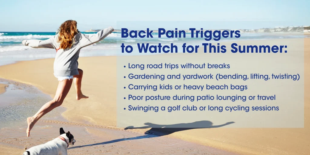 Summer is the season for backyard BBQs, beach days, golf rounds, and weekend getaways. But when back pain strikes, it can turn your favorite moments into missed opportunities. Don’t let pain sideline you, especially when there are simple ways to stay active and strong all season long.