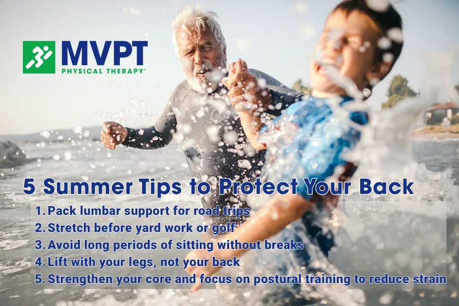 While physical therapy is one of the most effective ways to address back discomfort, there are also simple strategies you can use to stay active and mobile throughout the summer. With a few small adjustments to your daily routine (especially when sitting, traveling, or lifting) you can reduce strain on your spine and support your long-term health.