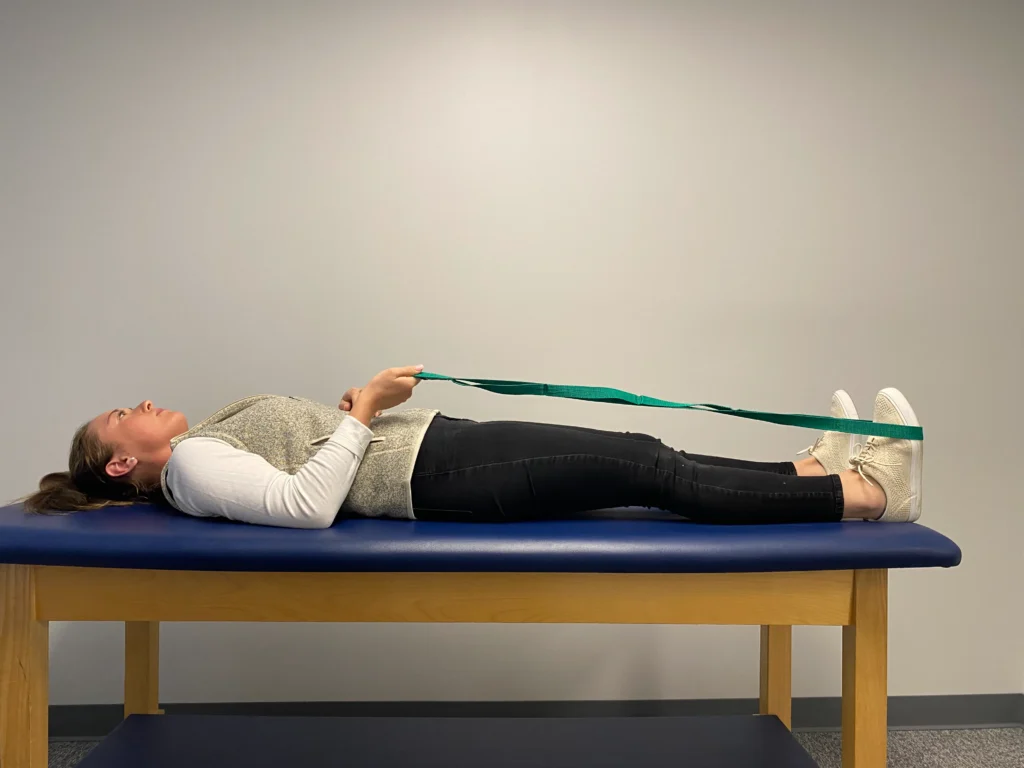 - Place a strap or band around the ball of your foot